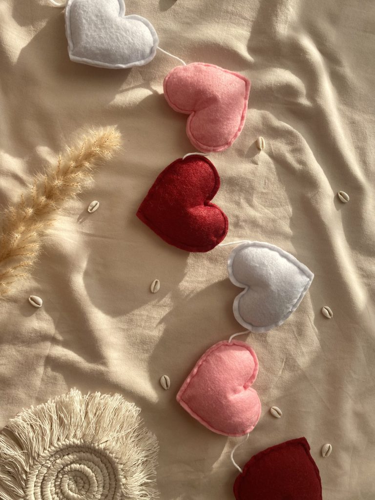 Diese handgemachten Girlanden aus weichem Filz in Form von liebevoll genähten Herzen sind perfekt für Dich und Deine Liebsten. Als Wanddekoration, Highlight für festliche Anlässe oder zauberhaftes Geschenk für Deine Lieblingsmenschen – diese Girlanden erfüllen den Raum mit Wärme ❥